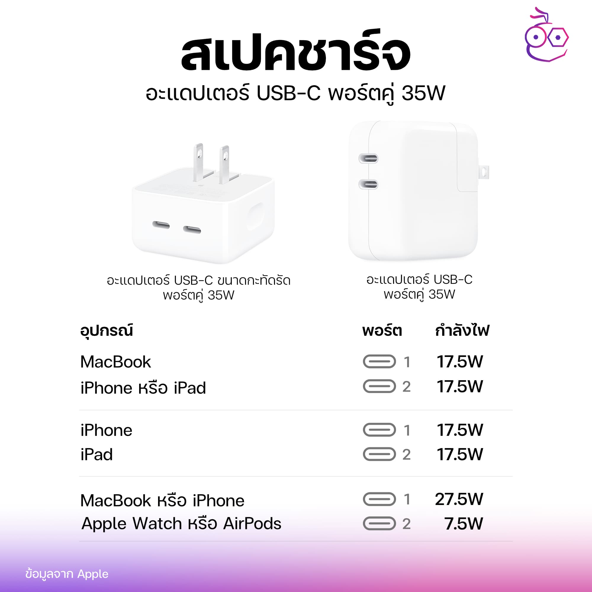 - อะแดปเตอร์ USB-C ขนาดกะทัดรัดพอร์ตคู่ 35W : https://apple.co/3mZBU9D