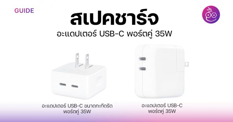 Apple ได้เปิดขาย อะแดปเตอร์แปลงไฟ USB-C แบบพอร์ตคู่ขนาด 35W มาซักพักแล้ว โดยอะแดปเตอร์แบบพอร์ตคู่มีขาย 2 แบบ คือขนาดกระทัดรัดสำหรับการพกพาและขนาดธรรมดาแบบใช้งานที่บ้าน โดยอะแดปเตอร์พอร์ตคู่นี้ทำให้เราสามารถชาร์จอุปกรณ์ได้ 2 เครื่องพร้อมกัน มาดูกันว่าถ้าชาร์จพร้อมกัน 2 เครื่องจะจ่ายไฟกี่วัตต์