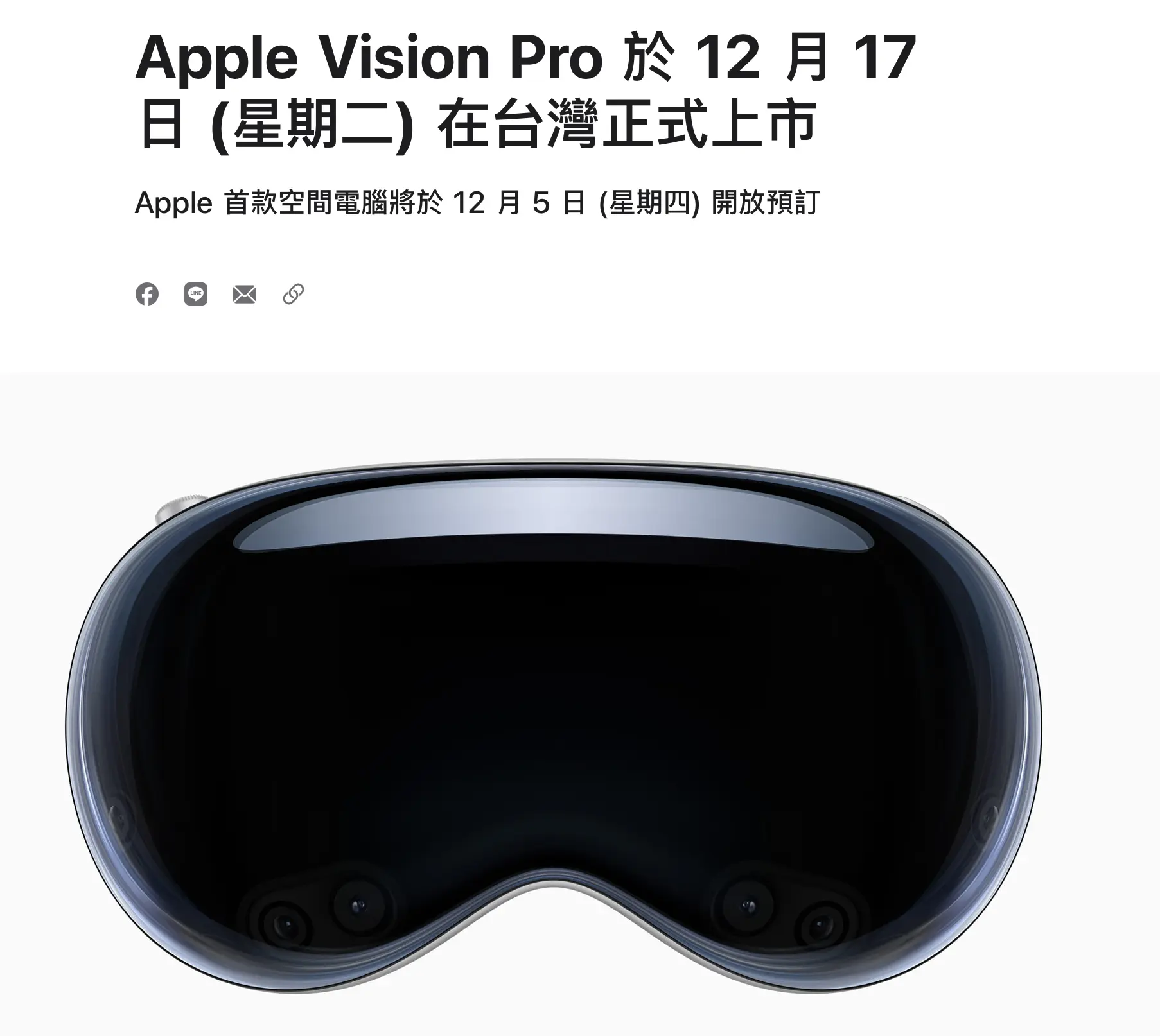 Apple ประกาศอย่างเป็นทางการว่า Vision Pro จะเปิดให้ลูกค้าในไต้หวันสั่งซื้อล่วงหน้าวันที่ 5 ธ.ค. 2024 และจะเปิดขายที่หน้าร้านวันที่ 17 ธ.ค. 2024