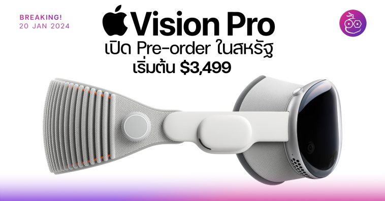 19 ม.ค. 2024 ตามเวลาสหรัฐฯ Apple ได้เปิดให้สั่งซื้อล่วงหน้า Apple Vision Pro แล้ว มี 3 ความจุให้เลือก เริ่มต้นราคา 3,499 ดอลลาร์