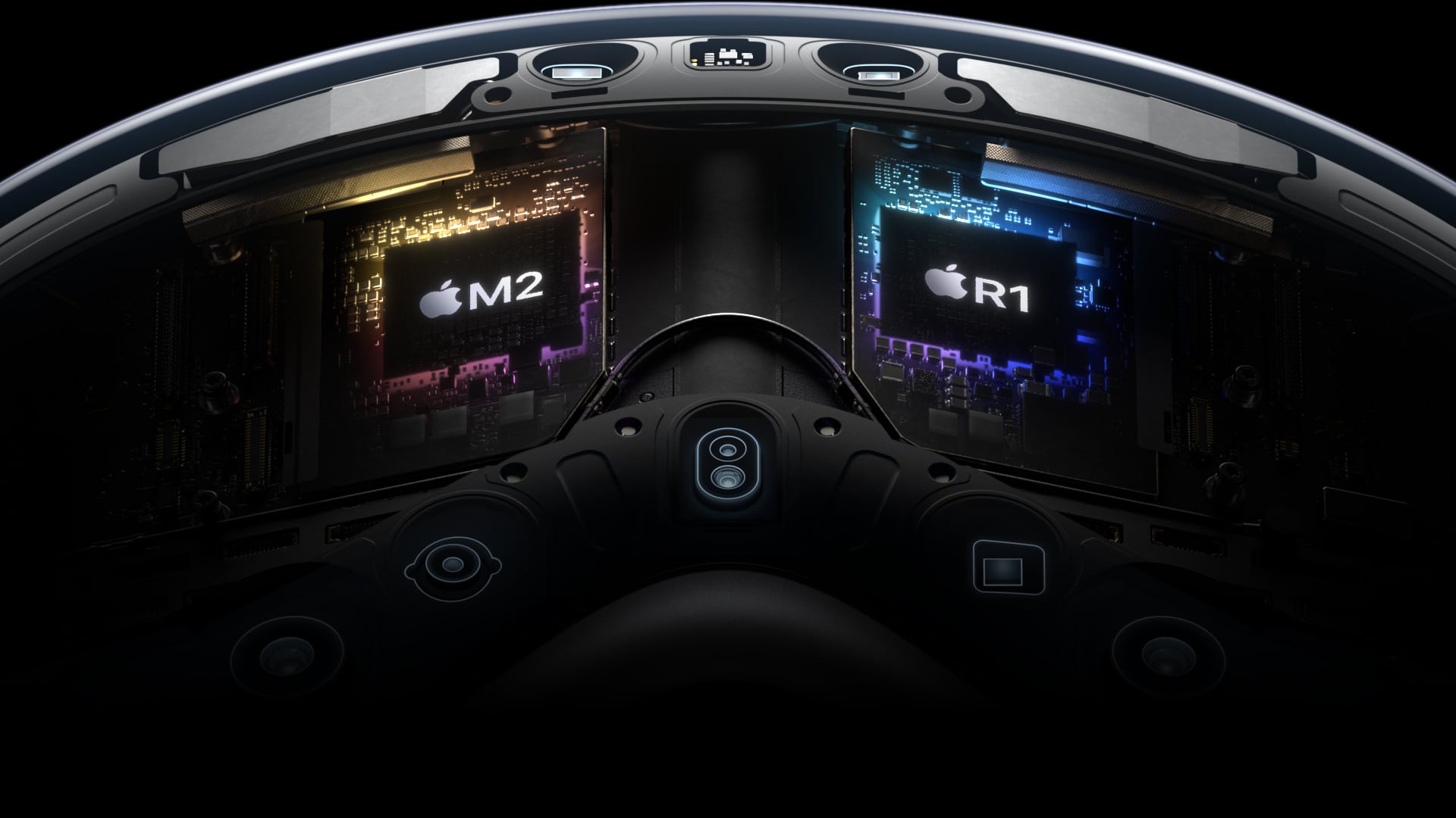 ข้อมูลใน Xcode 15.2 (เครื่องมือพัฒนาแอปใน visionOS) ระบุว่า Apple Vision Pro จะมาพร้อม RAM 16GB โดยข้อมูลสเปคระบุว่าตัวเครื่องมาพร้อมชิป M2 ที่ใช้จัดการประสิทธิภาพเป็นหลัก คู่กับชิป R1 ที่ใช้ควบคุมภาพ วิดีโอ จากกล้อง 12 ตัว, ไมโครโฟน 6 ตัว กล่าวคือ ชิปแต่ละตัวแยกการทำงานตามหน้าที่ของตัวเอง