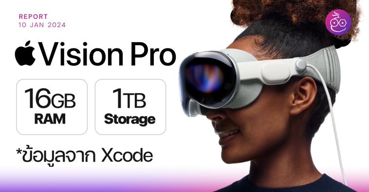 มีรายงานการพบข้อมูลสเปค Apple Vision Pro เพิ่มเติมใน Xcode 15.2 ว่ามาพร้อม RAM 16GB และมีความจุสูงสุดที่ 1TB