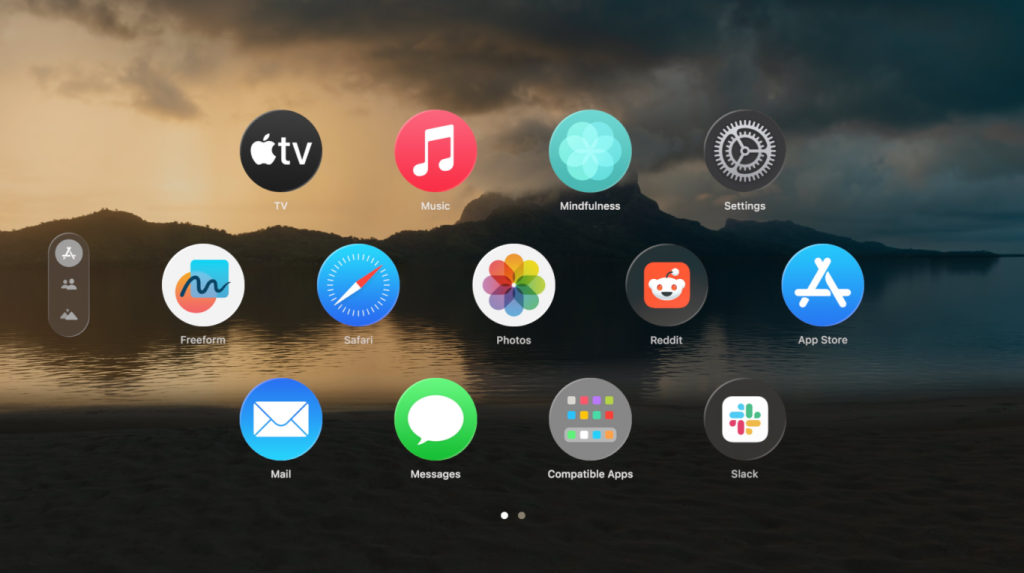 เมื่อใช้งาน Apple Vision Pro อยู่และตั้งค่าสภาพแวดล้อมการมองเห็นไม่ว่าจะเป็น ภาพบนชายหาด บนภูเขา หรือแม้แต่บนดวงจันทร์ ใน visionOS 2 จะจดจําตำแหน่ง และเแสดง Magic Keyboard หรือแป้นพิมพ์ MacBook ขึ้นมาเพื่อให้เราสามารถพิมพ์ต่อไปได้