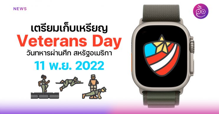 ผู้ใช้ Apple Watch มีเวลาเตรียมตัวเก็บเหรียญจากคำท้าพิเศษเนื่องในวันทหารผ่านศึก (Veterans Day) ในประเทศสหรัฐอเมริกา วันที่ 11 พฤศจิกายนนี้ ส่งเสริมให้ผู้ใช้มีสุขภาพที่ดีขึ้น มาชมกันว่าต้องทำอย่างไรบ้างถึงจะได้เหรียญพิเศษนี้