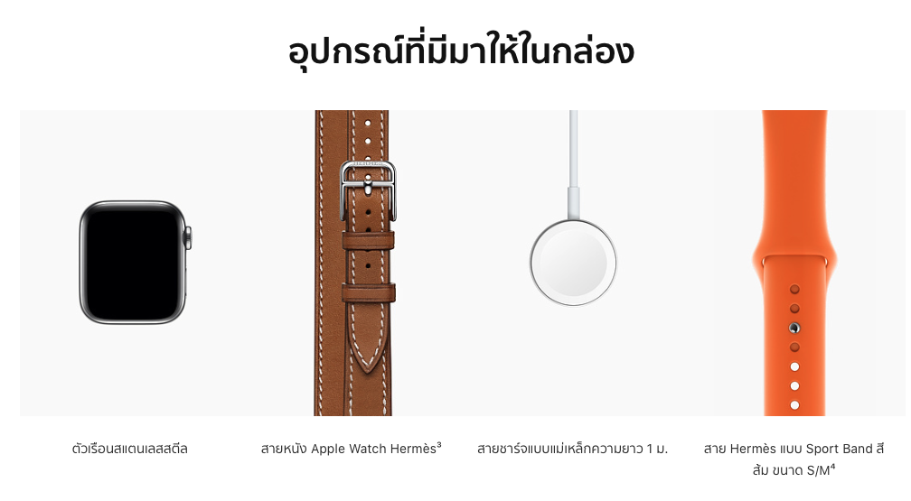 ตอน Apple เปิดตัว Apple Watch Series 6, SE ยังใส่หัวชาร์จ 5W มาในกล่อง Apple Watch Hermes แต่ตอนนี้ (24 ก.ย. 2020) ไม่มีหัวชาร์จใส่มาในกล่องแล้ว