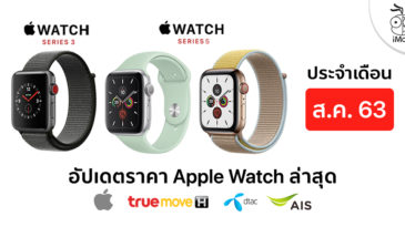 4ข้อมูลนี้จะแสดงราคา Apple Watch Series 3, Series 6 และ Apple Watch SE ที่วางจำหน่าย ณ ปัจจุบัน มีทั้งราคาเครื่องเปล่าและราคาที่ถูกสุดที่มาพร้อมแพ็กเกจของแต่ละเครือข่าย คือ Apple, TrueMove H, AIS, DTAC (ไม่รวมร้านค้าอื่นๆ นอกจากนี้) ประจำเดือนมกราคม 2564 สามารถดูรายละเอียดเพิ่มเติมได้เลย