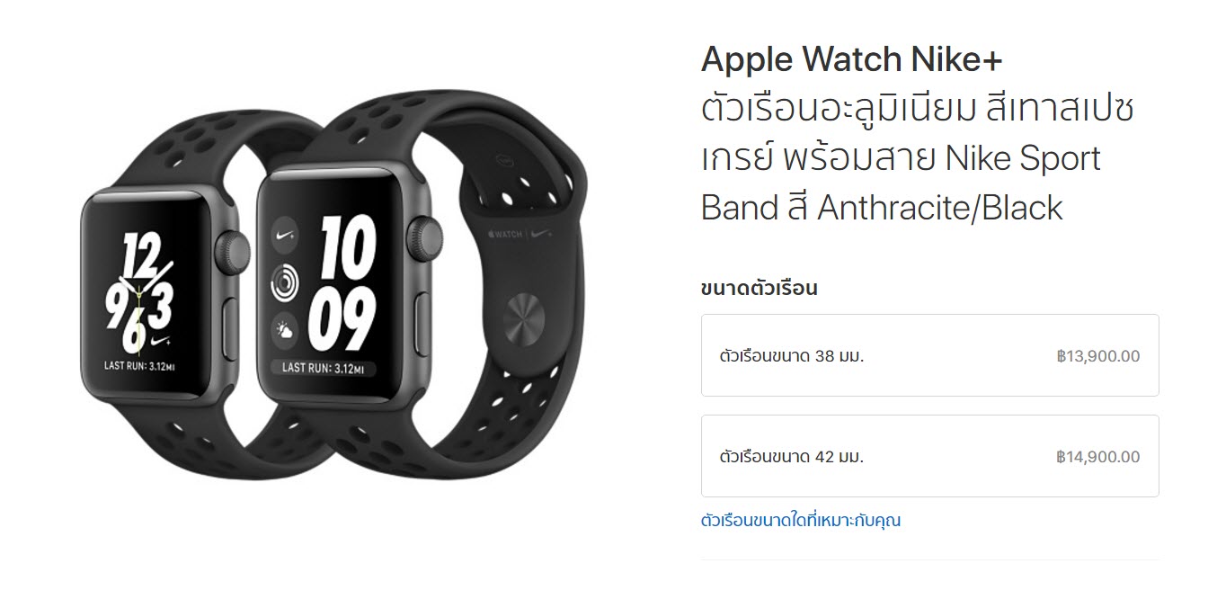 โดย Apple Watch Nike+ ทั้งสองแบบเปิดขาย 2 ขนาด ดังนี้