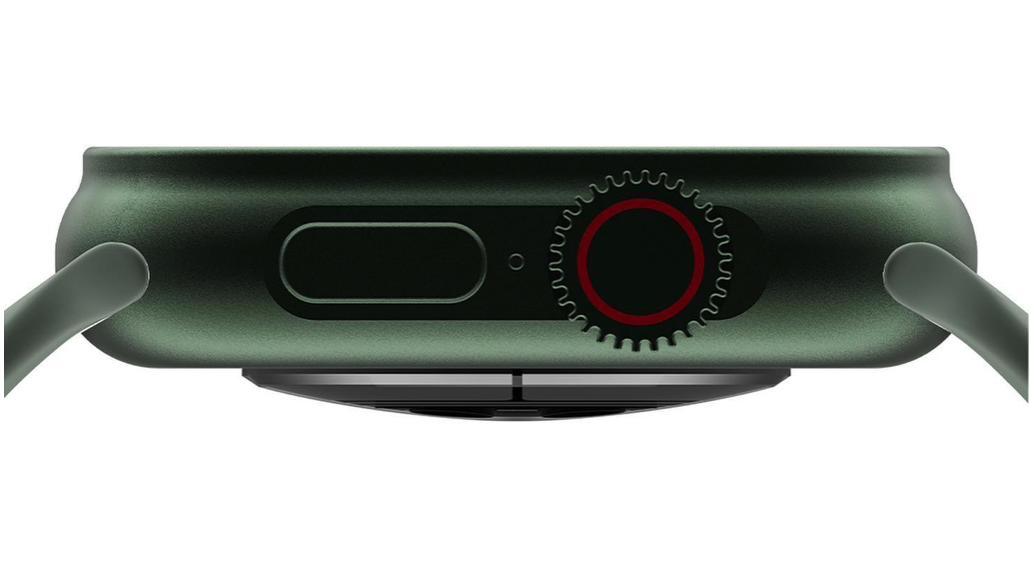 ปุ่มด้านข้างจากภาพ CAD จะเห็นได้ว่ายื่นออกมาจากตัวเรือนค่อนข้างมากเมื่อเทียบกับรุ่นก่อนหน้า โดย Digital Crown (เม็ดมะยม) มีขนาดใหญ่ ดูเหมือนเพื่อให้กด หมุน ควบคุมได้ง่ายขึ้น