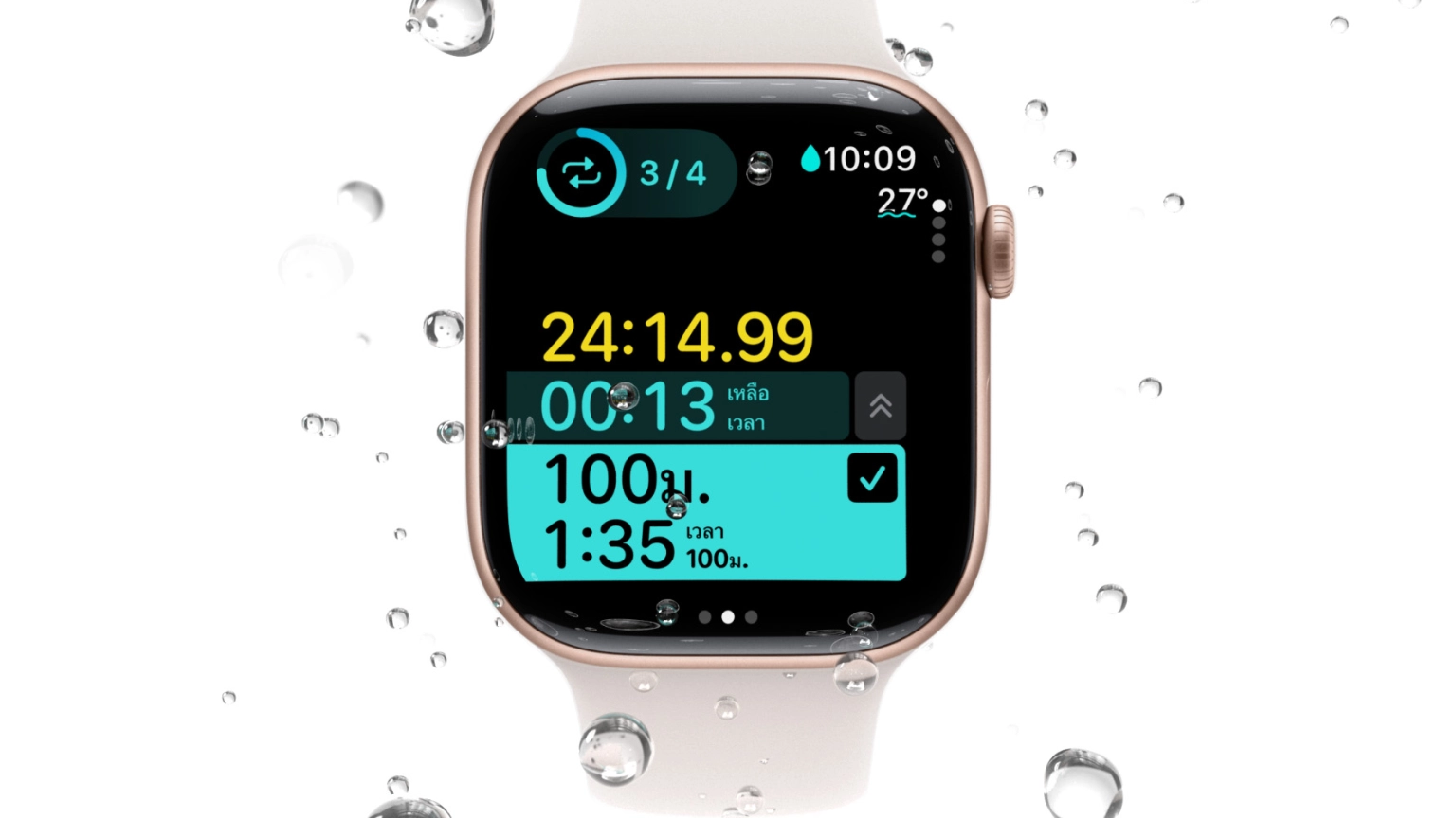 Apple Watch เหมาะสำหรับกิจกรรมทางน้ำและรอบๆ แหล่งน้ำด้วยดีไซน์กันน้ำขณะว่ายน้ำที่มีความสามารถในการทนน้ำที่ระดับ 50 เมตร การตรวจจับท่าว่ายน้ำอัตโนมัติ การนับรอบ และวันนี้ watchOS 11 ยังมาพร้อมการออกกำลังกายแบบกำหนดเองสำหรับการว่ายน้ำในสระอีกด้วย