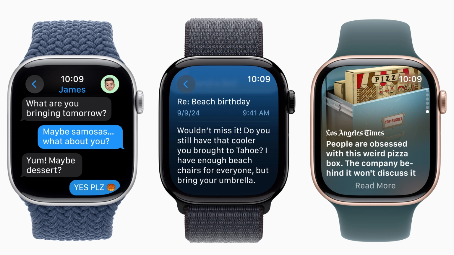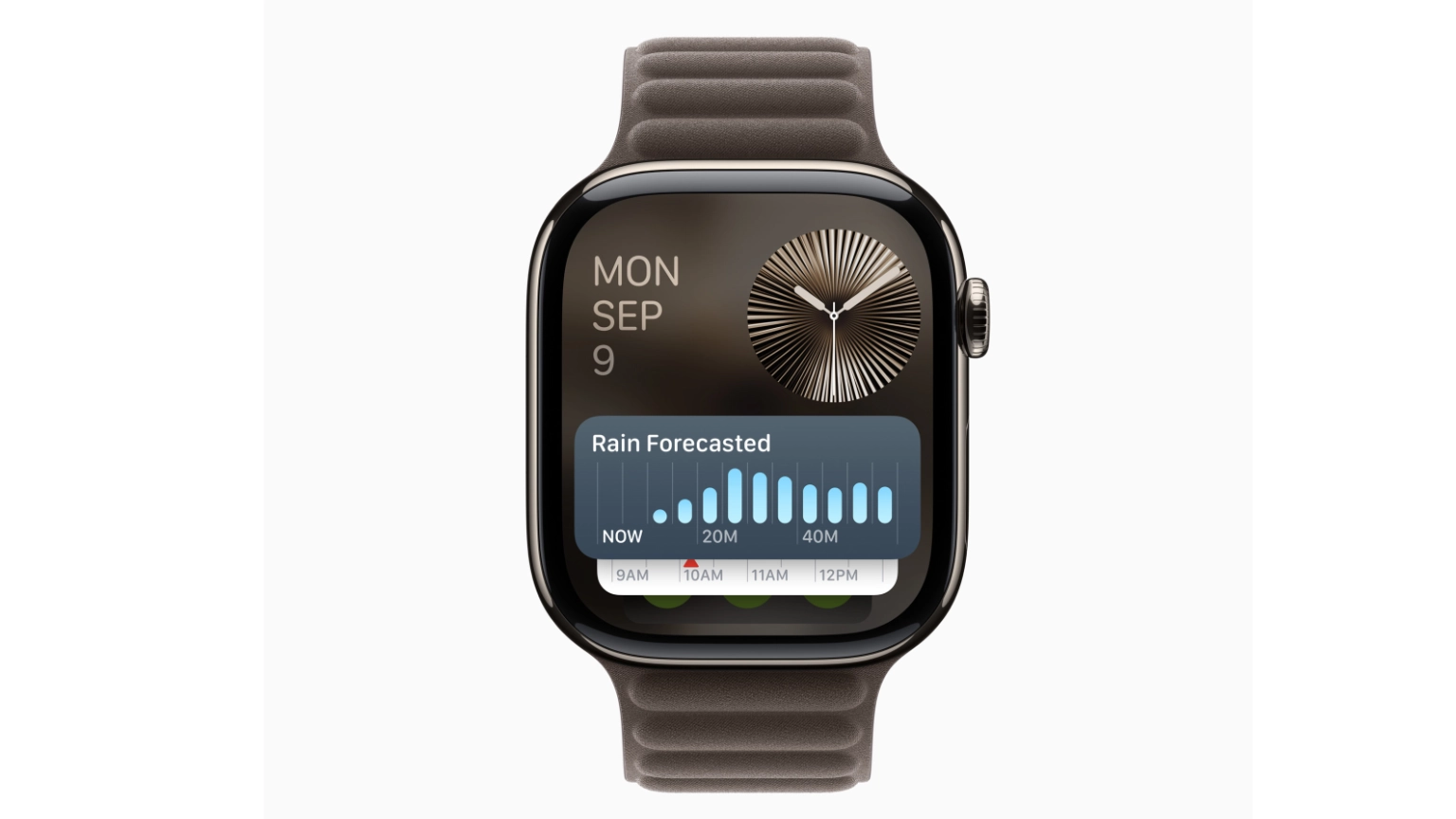 สายแบบ Milanese Loop และ Link Bracelet ได้รับการออกแบบใหม่ด้วยสีที่เข้ากันอย่างลงตัวกับตัวเรือนไทเทเนียมใหม่ของ Apple Watch Series 10