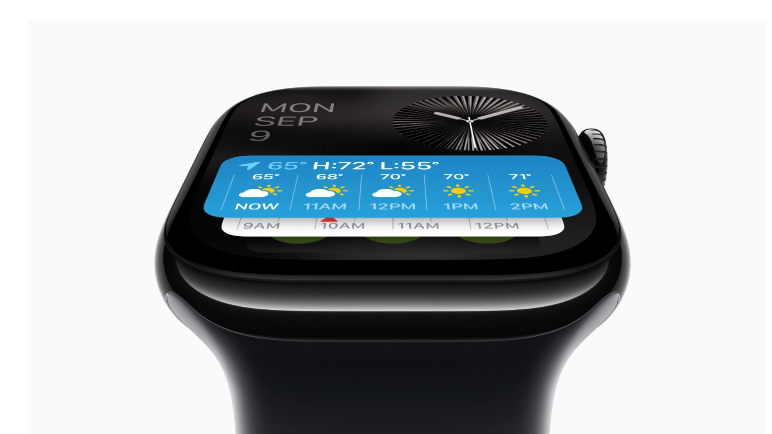 นอกจากนี้ จอภาพ OLED แบบมุมกว้างยังประหยัดพลังงานยิ่งกว่าเดิม ซึ่งทำให้อัตรารีเฟรชขณะอยู่ในโหมดการแสดงผลแบบติดตลอดเร็วขึ้นจากทุก 1 นาทีเป็นทุก 1 วินาที วันนี้ ผู้ใช้จึงเห็นการเคลื่อนที่ของเข็มวินาทีบนหน้าปัดนาฬิกาบางแบบได้แล้วโดยไม่ต้องยกข้อมือขึ้นมา