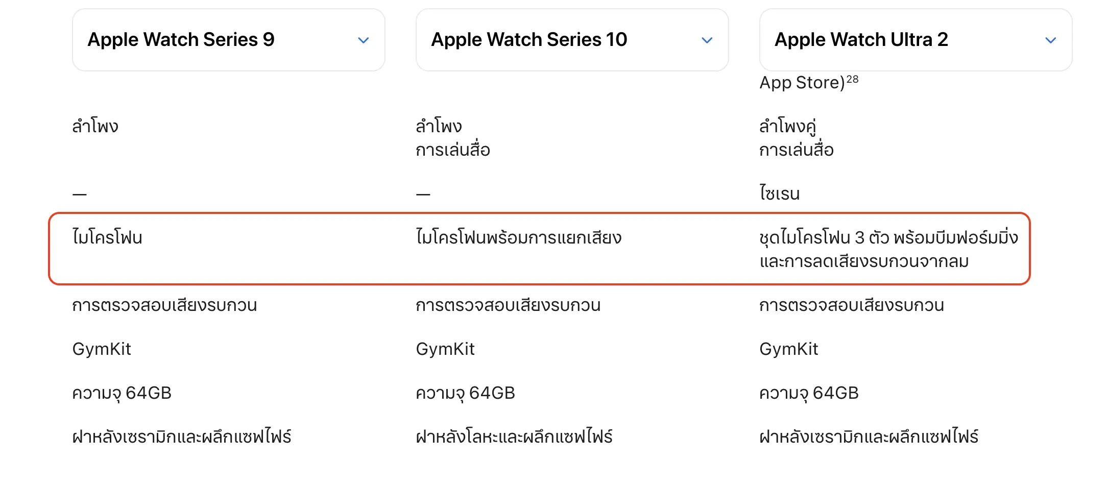 คุณสมบัติการการลบเสียงรบกวนจากลมมีอยู่แล้วใน Apple Watch Ultra 1 และ 2 แต่ไม่มีใน Apple Watch Seris 9 หรือรุ่นที่เก่ากว่า