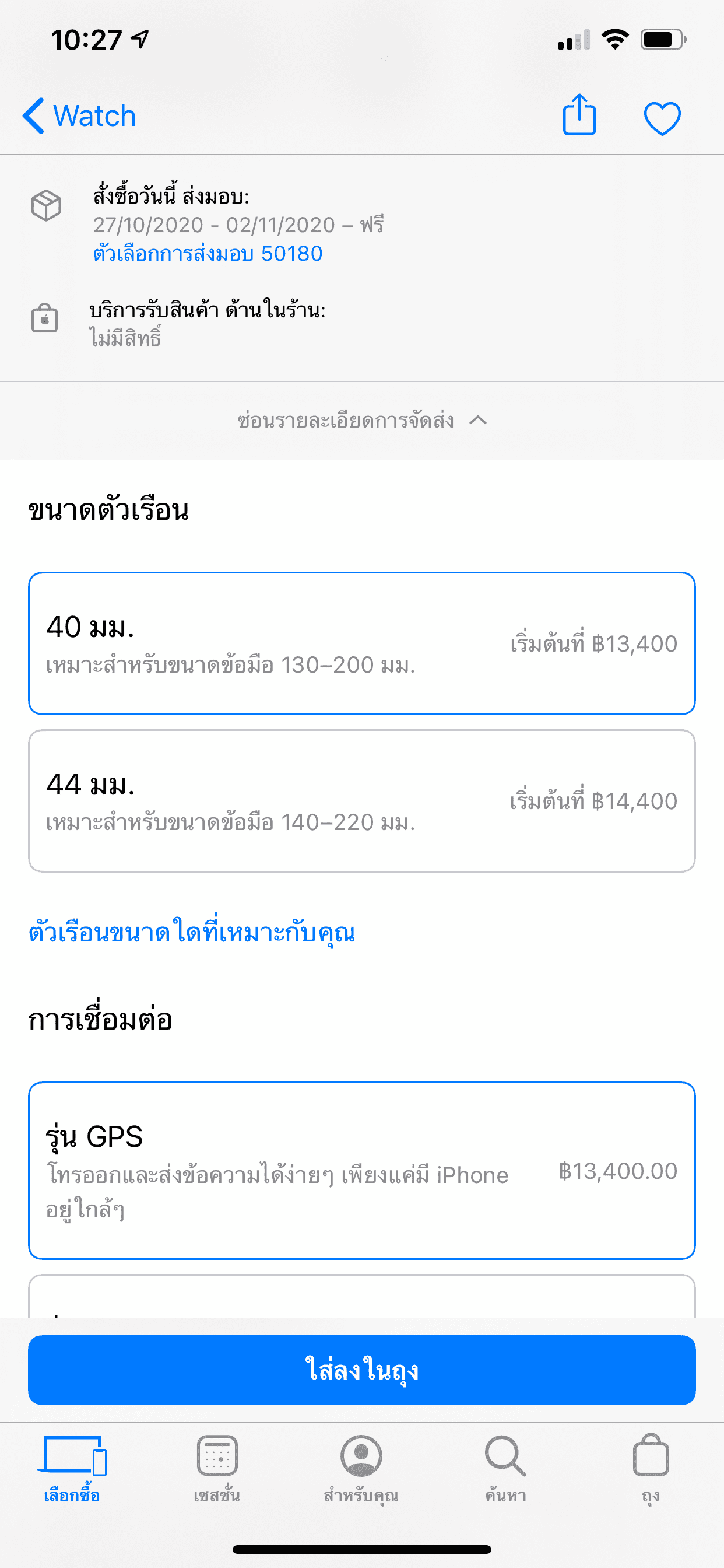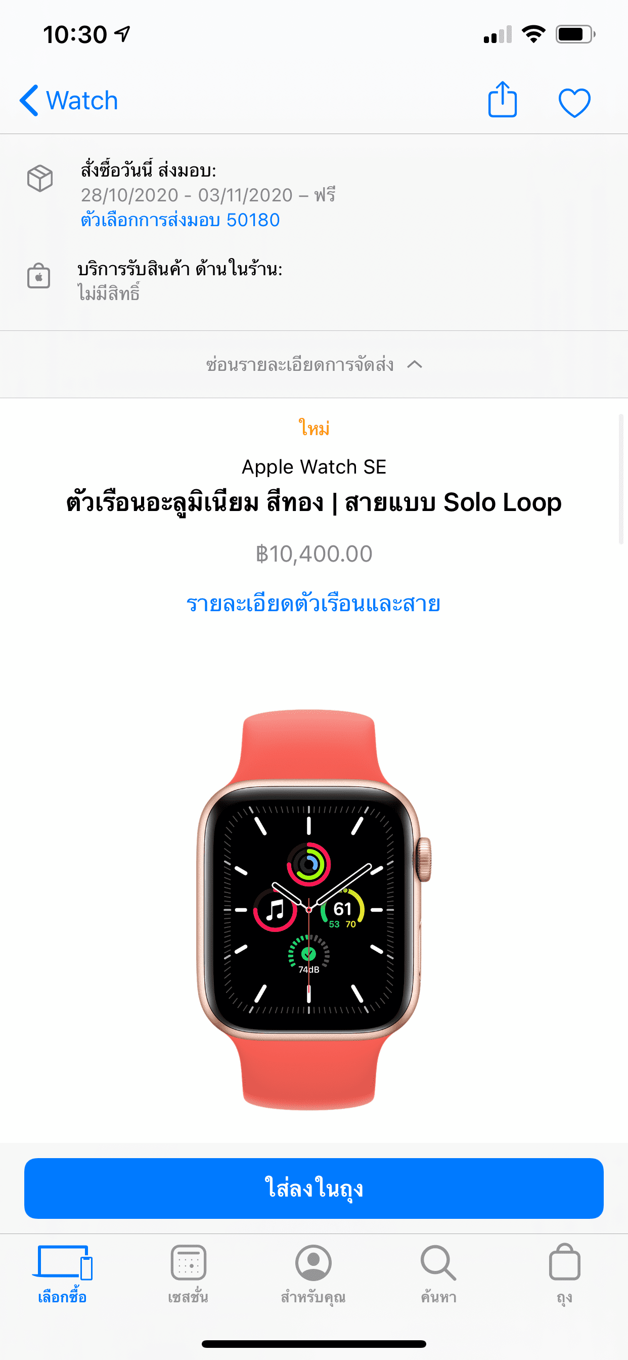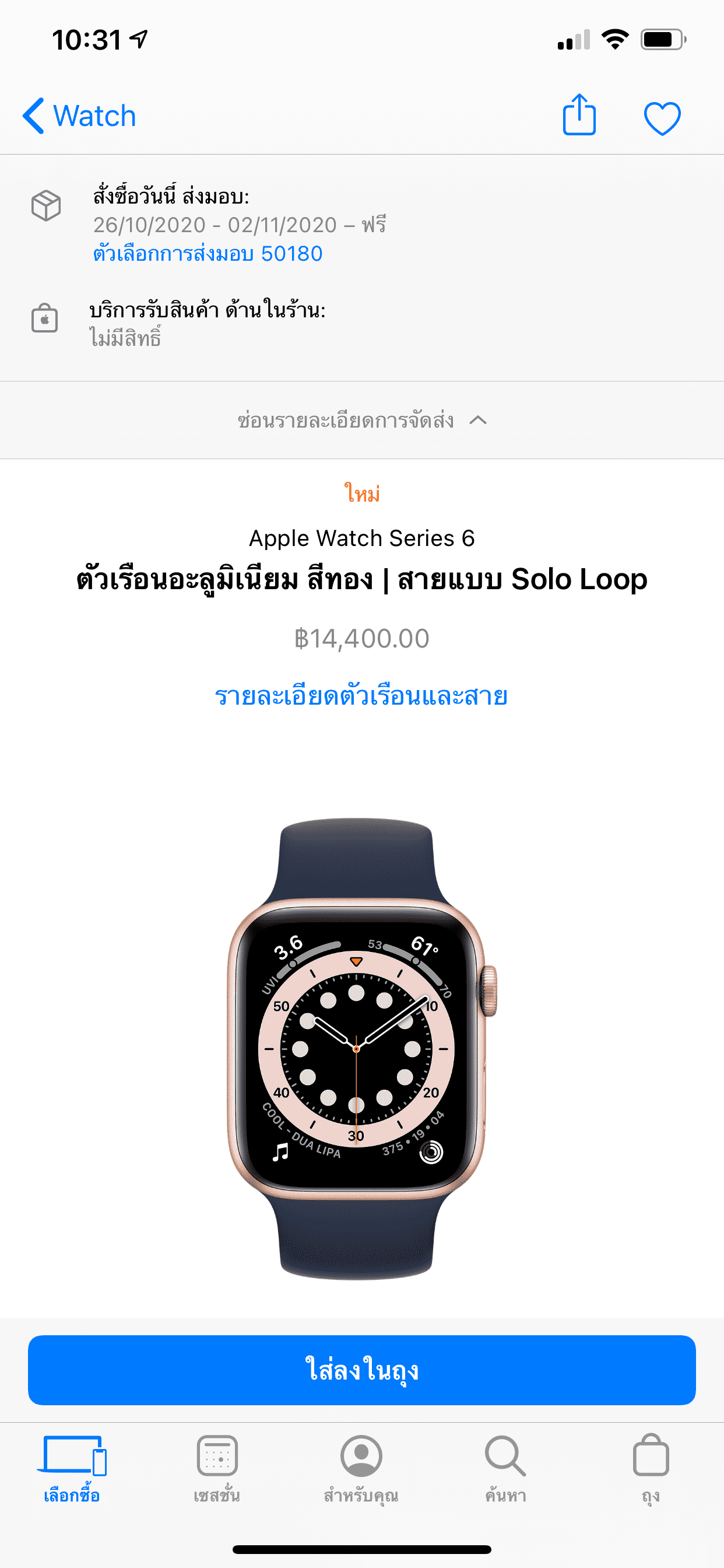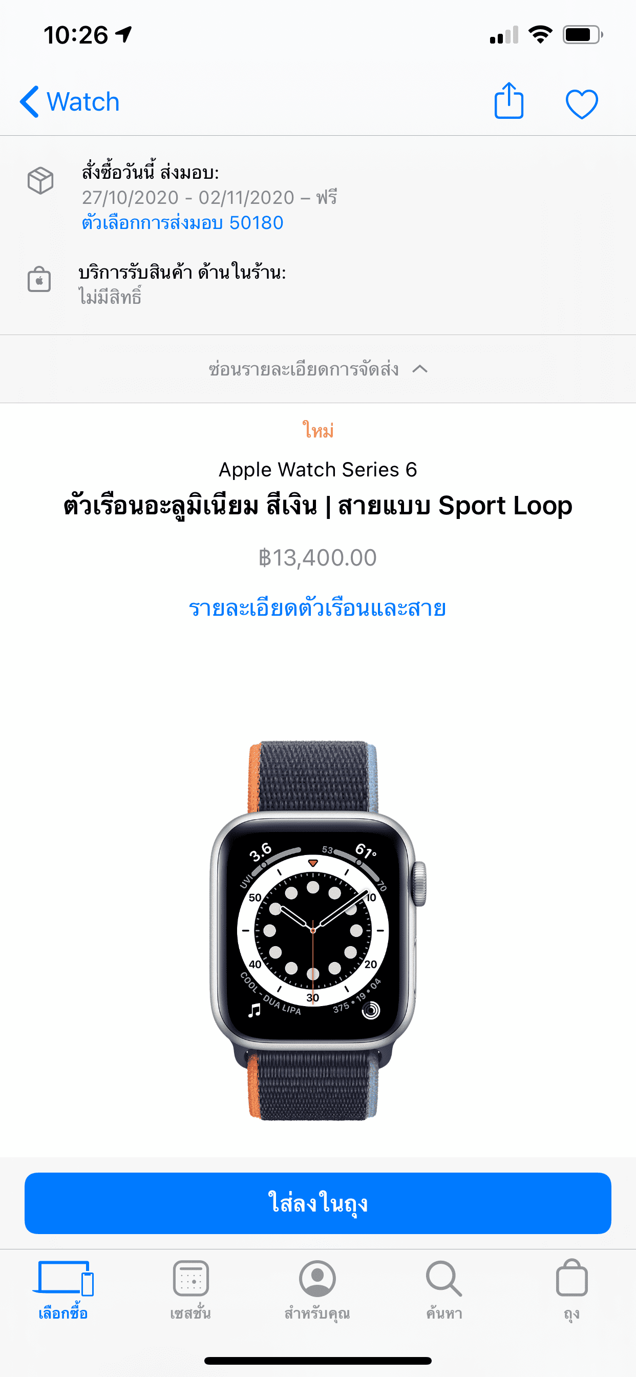 เมื่อเข้าไปตรวจสอบใน Apple Store ออนไลน์ไทยพบว่า Apple Watch Series 6 รุ่น GPS หลาย ๆ โมเดล สินค้าเริ่มปรับวันส่งของให้เป็นปลายเดือน ต.ค. – ต้นเดือน พ.ย.