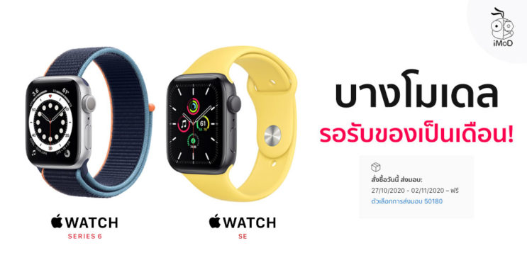 นอกจาก iPad รุ่นที่ 8 Wi-Fi จะรอของนานแล้ว Apple Watch Series 6, Apple Watch SE รุ่น GPS บางโมเดลก็รอของนานเหมือนกัน สั่งตอนนี้รับของปลายเดือน ต.ค.
