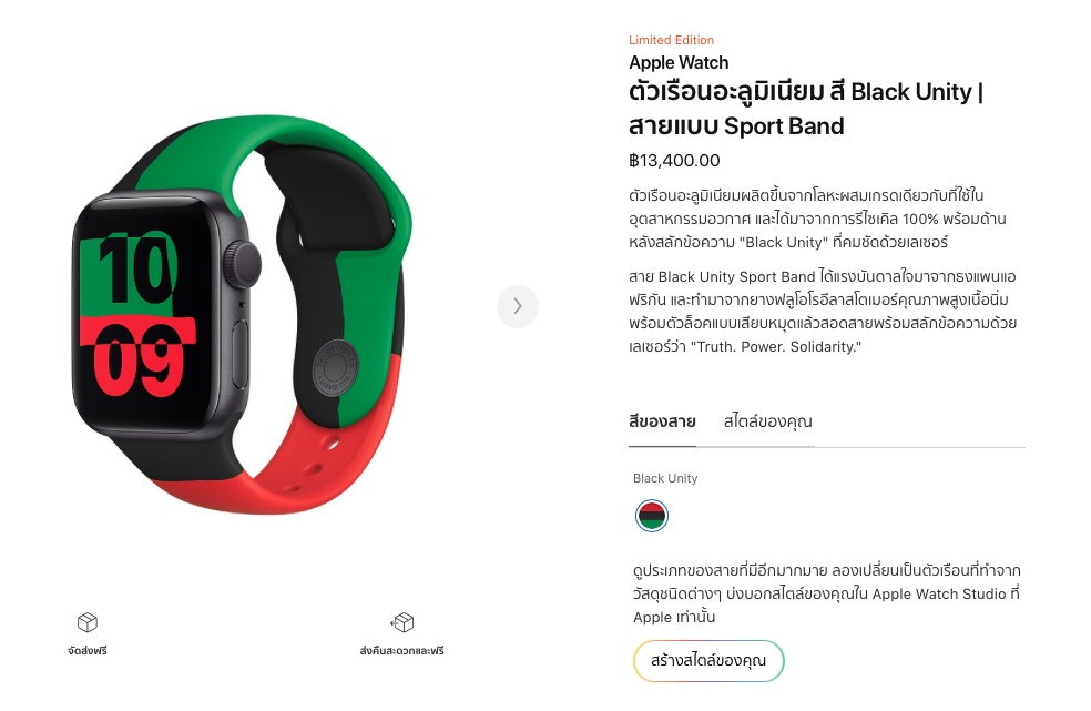 นอกจากเปิดขายสาย Black Unity แล้ว Apple ก็ได้เปิดขาย Apple Watch Series 6 รุ่น Black Unity ที่ Apple Store ออนไลน์เช่นกัน