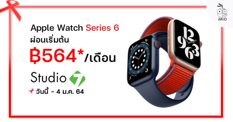 Studio 7 จัดโปรโมชัน Apple Watch Series 6 ผ่อนเริ่มต้น 564 บาทต่อเดือน พร้อมผ่อนสบายนานสุด 24 เดือน วันนี้ – 4 ม.ค. 64