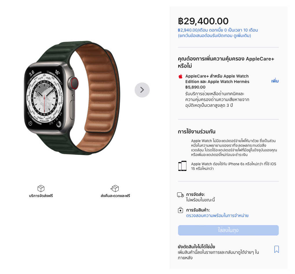 ส่วนในไทยนั้น Apple Watch Series 7 Edition บางโมเดลอย่าง ตัวเรือนไทเทเนียม ขนาด 41 มม. พร้อมสายแบบ Leather Link สินค้าไม่พร้อมจำหน่ายแล้ว