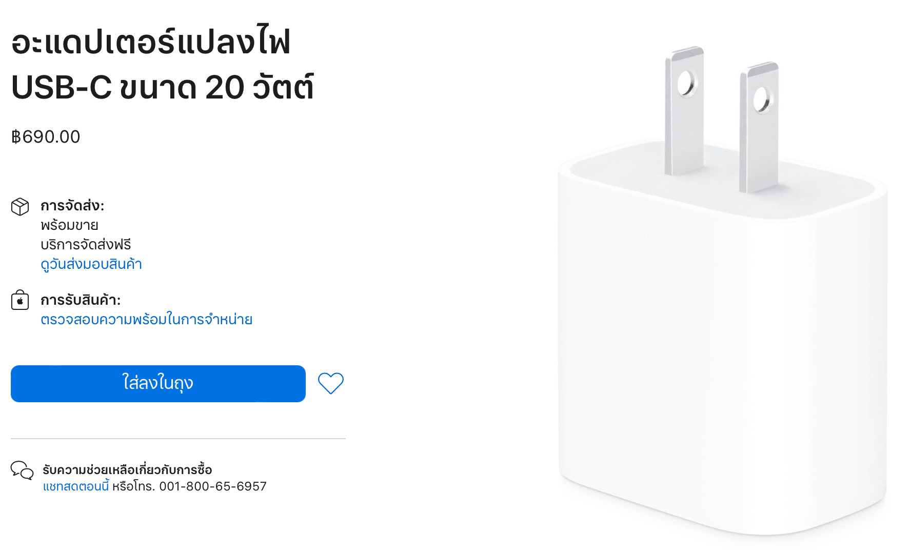หัวชาร์จ USB-C ขนาด 20W ของ Apple ราคา 690 บาท