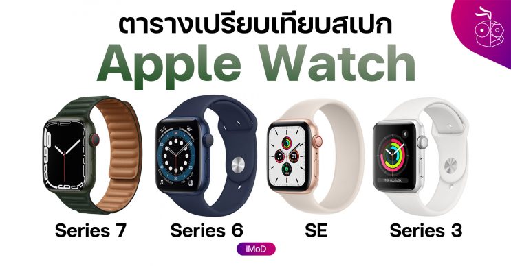 Apple เปิดตัวและได้เปิดให้สั่งซื้อ Apple Watch Series 7 ในไทยแล้ว มาชมข้อมูลเปรียบเทียบสเปกกับรุ่นเก่าอย่าง Series 6, SE และ Series 3 ว่ามีอะไรต่างกันบ้าง