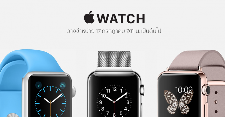 Apple จะเริ่มให้คนที่สนใจจะสั่งซื้อ Apple Watch สามารถสั่งซื้อได้ในเวลา 07.00 น เป็นต้นไป สำหรับคนที่สนใจขี้เกียจออกไปซื้อไปแย่งกับคนที่จะซื้อผ่าน iStudio สามารถเลือกซื้อผ่าน Online Store แทนได้เลยครับ