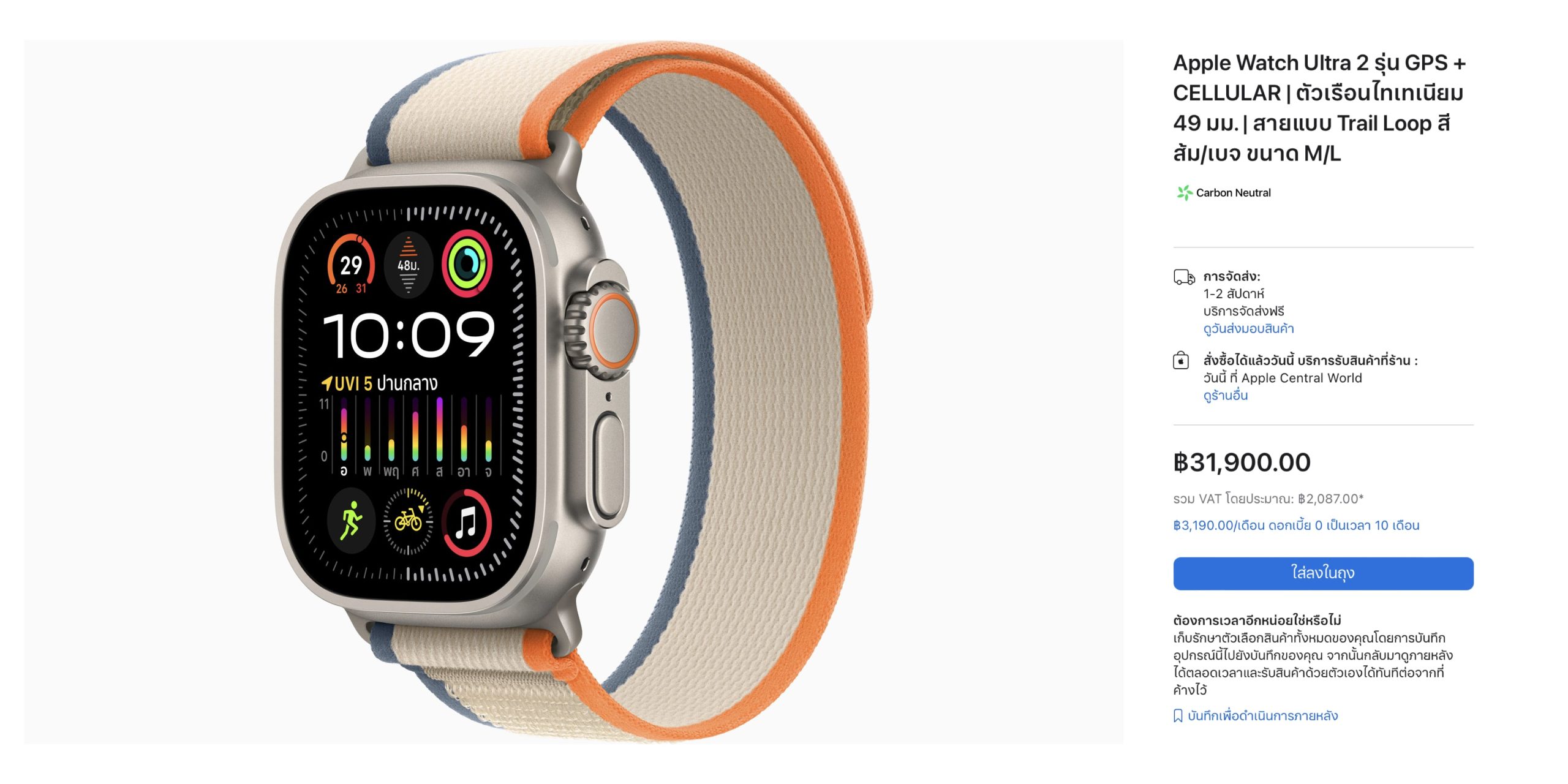 Apple Watch Ultra 2 มีรุ่นเดียว ราคาเดียว 31,900 บาท