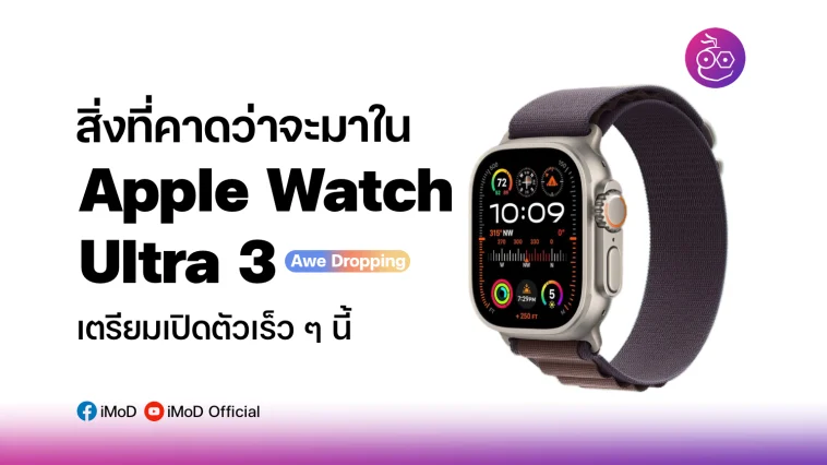 คาดการณ์ที่สิ่งจะมาใน Apple Watch Ultra 3 จะมีได้รับการอัปเดตเพิ่มเติมหรือไม่ เนื่องจาหปีที่แล้วมีการเปิดตัวแต่สีใหม่ แต่สเปคยังคงเดิม เตรียมลุ้นกันในงาน “Awe Dropping” (ตื่นตาเต็ม ๆ) ของ Apple จัดในวันที่ 9 ก.ย. 2025 ( ช่วงเที่ยงคืนเข้าวันที่ 10 ก.ย. 2025 ตามเวลาประเทศไทย)