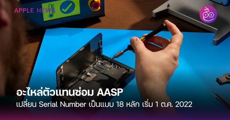 โดย Apple ได้ทำการแจ้งข้อมูลนี้ไปยังตัวแทน Apple authorized service providers (AASP) เพื่อแจ้งให้ทางศูยน์บริการและช่างซ่อมทราบว่าจะมีการอัปเดตไปใช้เลข 18 หลัก ในชิ้นส่วนซ่อม โดยจะเริ่มวันที่ 1 ตุลาคม 2022 รวมถึงการซ่อมสินค้าใหม่ ๆ ที่กำลังจะเปิดตัวในอนาคตด้วยค่ะ