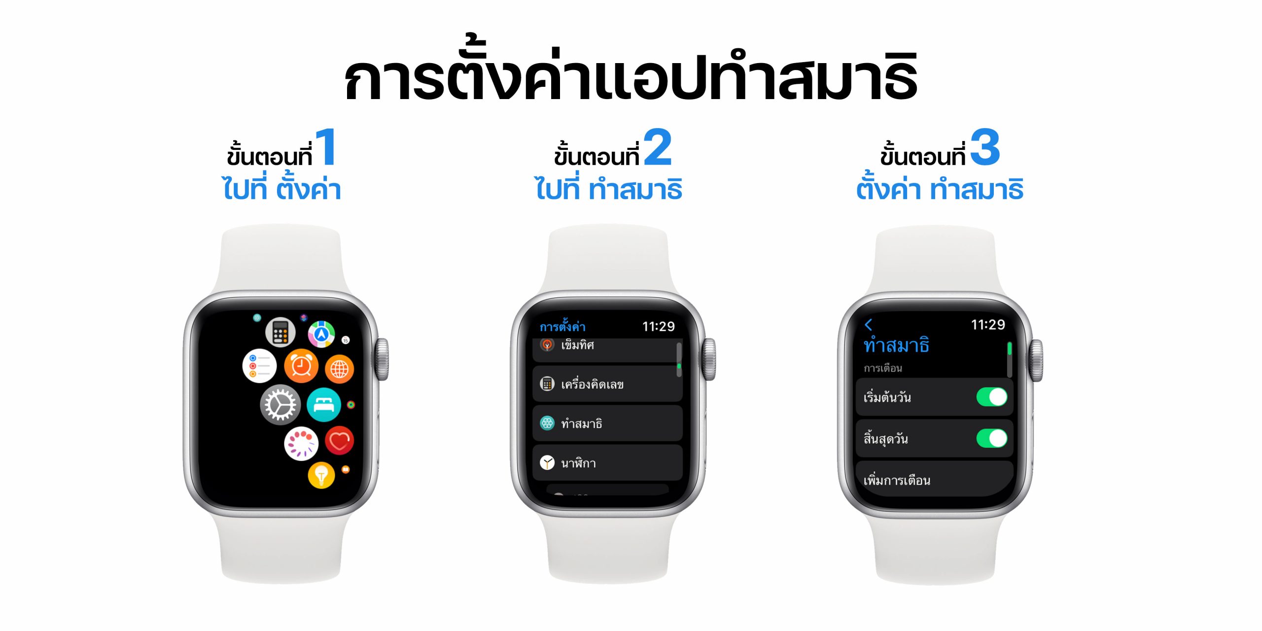 โดยไปที่ Apple Watch ตั้งค่า > ทำสมาธิ