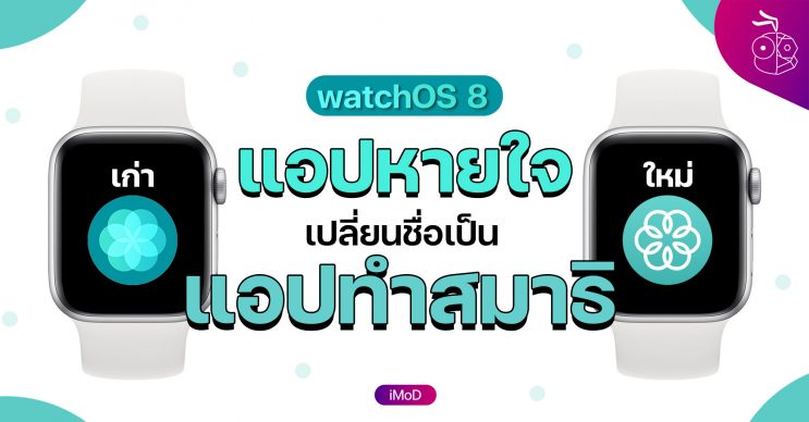 Apple ได้ปล่อยตัว Public Beta ของ WatchOS 8 มาให้ทดลองใช้แล้ว ซึ่ง WatchOS 8 ได้อัปเดตฟีเจอร์หลายตัวให้น่าสนใจมากขึ้น รวมถึงแอปหายใจด้วยเช่นกัน ซึ่งตอนนี้แอปได้เปลี่ยนชื่อใหม่แล้ว จากแอปหายใจ เป็นแอปทำสมาธิ โดยมีการเปลี่ยนแปลงตั้งแต่ โลโก้แอป จนถึง กราฟิกภายในแอปเลย ซึ่งมีอะไรอัปเดตบ้างนั้นวันนี้จะมาเล่าให้ฟังค่ะ