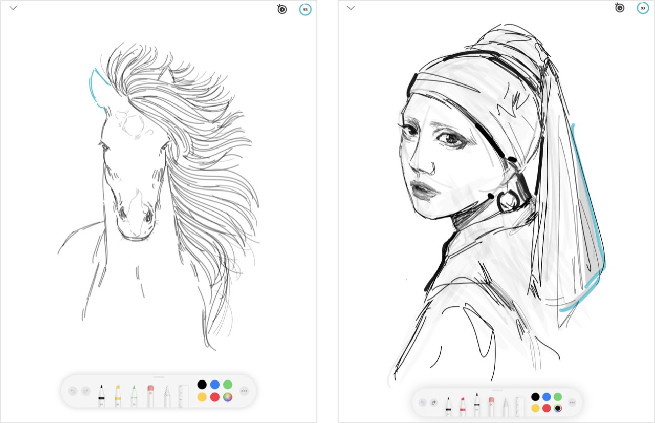 ภายในแอปมีรูปตัวอย่างมากมายให้เราเลือกฝึกวาด อาทิ รูปสัตว์ รูปใบหน้าคน รูปกล้ามเนื้อมนุษย์ เป็นต้น เราสนใจอยากฝึกวาดรูปไหนก็กดที่รูป และกดที่ Start Drawing ได้เลย ระบบก็จะแสดงเส้นสีฟ้าขึ้นมาทีละเส้น ให้เราลากตามทีละเส้นๆ และเมื่อเวลาผ่านไปไม่นาน (ดูสถานะการวาดจากปุ่มตัวเลขมุมขวาบนจอได้) เราก็จะเห็นภาพวาดที่สวยระดับโปรอยู่ตรงหน้า ซึ่งมันยิ่งเพิ่มความภาคภูมิใจเข้าไปอีก เมื่อเห็นกับตาว่ามันถูกวาดมาจากฝีมือของคุณเอง