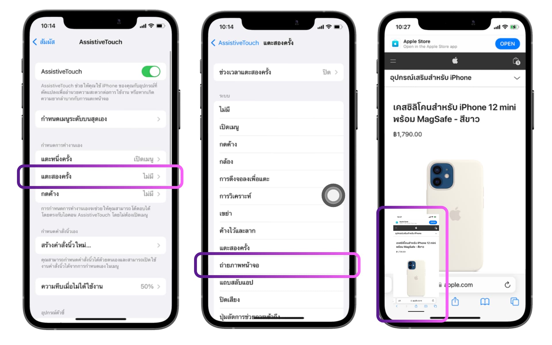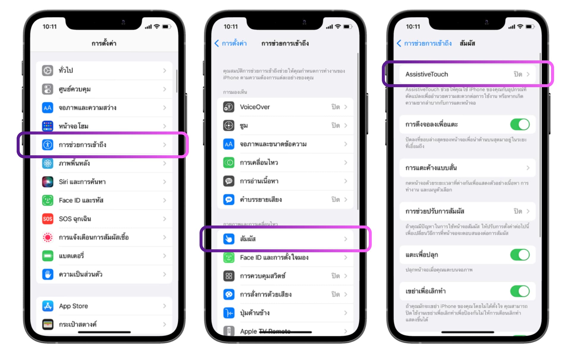 เข้าไปที่แอปการตั้งค่า > การช่วยการเข้าถึง > สัมผัส > AssistiveTouch