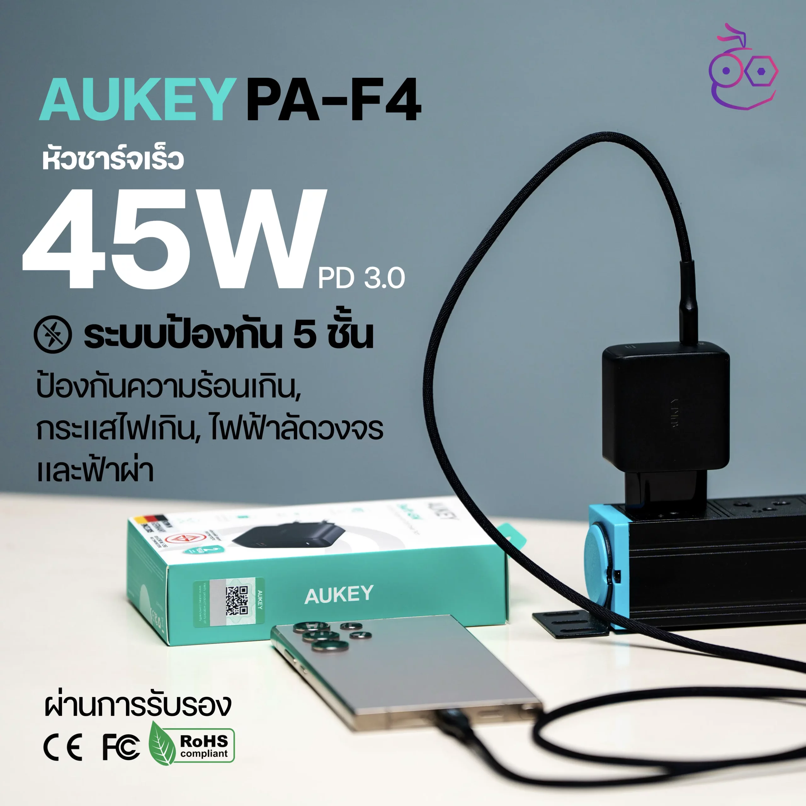 AUKEY PA-F4: หัวชาร์จเร็ว PD 3.0 ระบบป้องกัน 5 ชั้น ผ่านการรับรอง CE, FCC, RoHS
