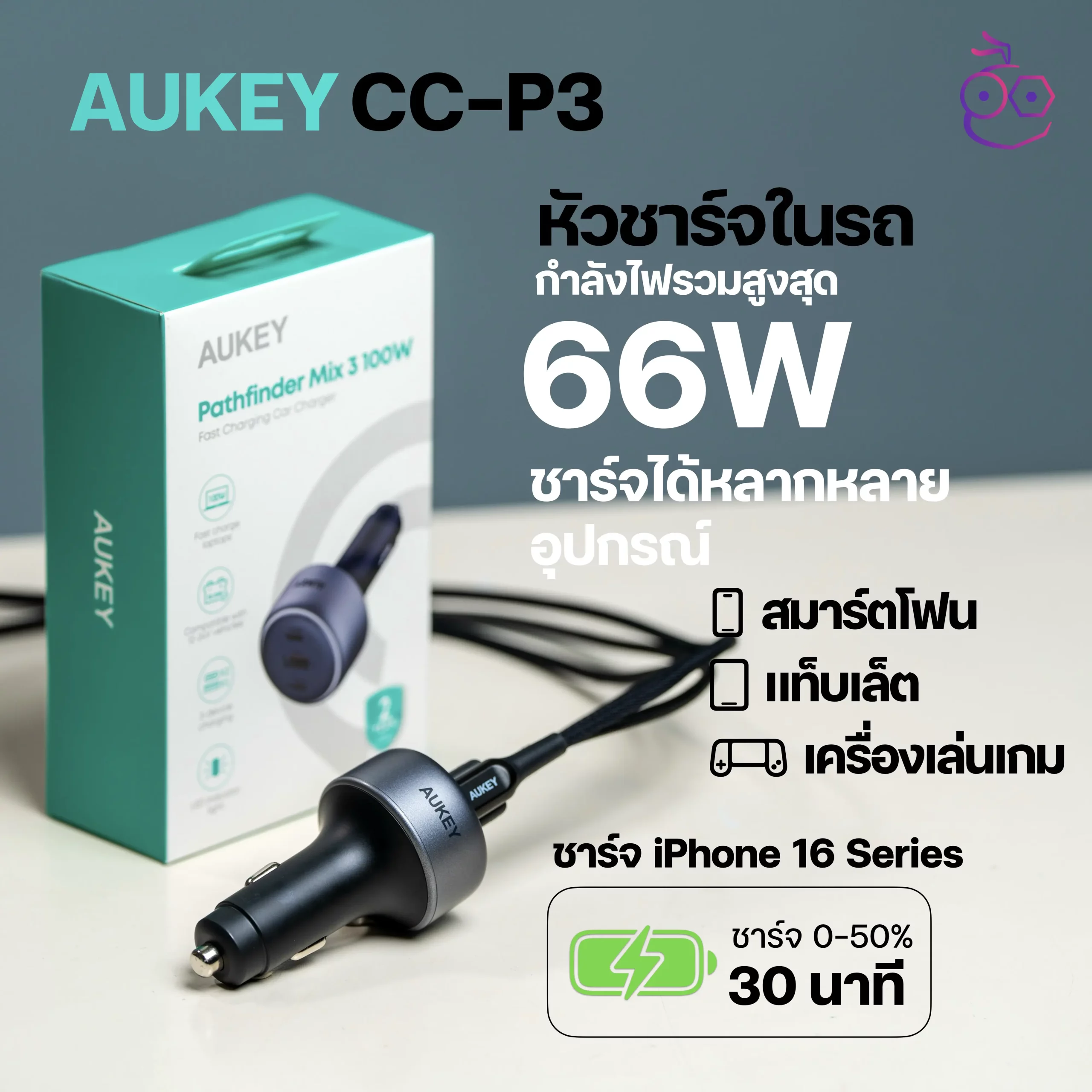 AUKEY CC-P3: หัวชาร์จในรถกำลังไฟรวมสูงสุด 66W ชาร์จได้หลายอุปกรณ์ ชาร์จ 0-50% ได้ใน 30 นาที