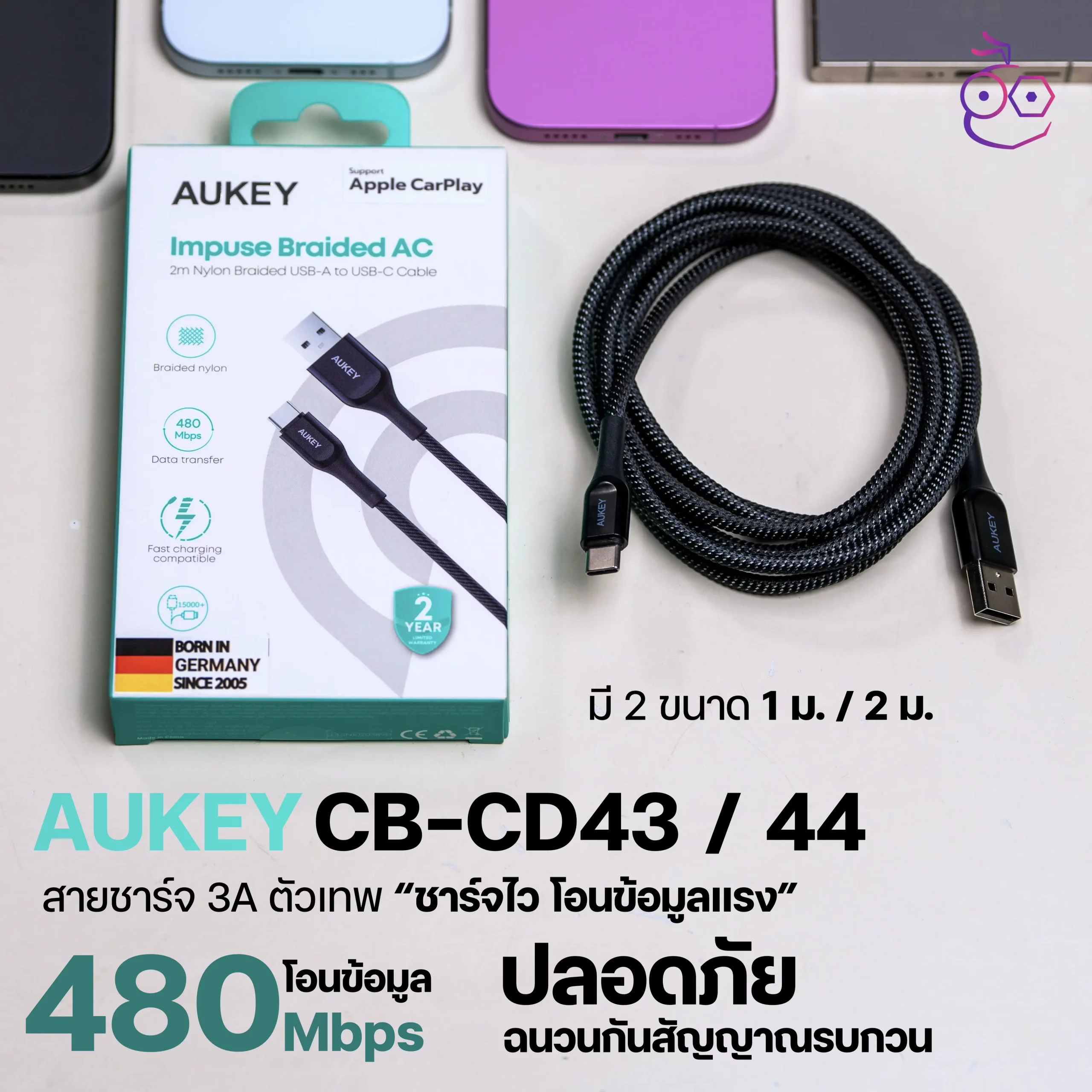 AUKEY CB-CD30: สาย USB-C to USB-A “ชาร์จเร็ว โอนข้อมูลเร็ว” จ่ายไฟสูงสุด 3A วัสดุไนล่อนถัก ทนทาน รองรับ Apple CarPlay