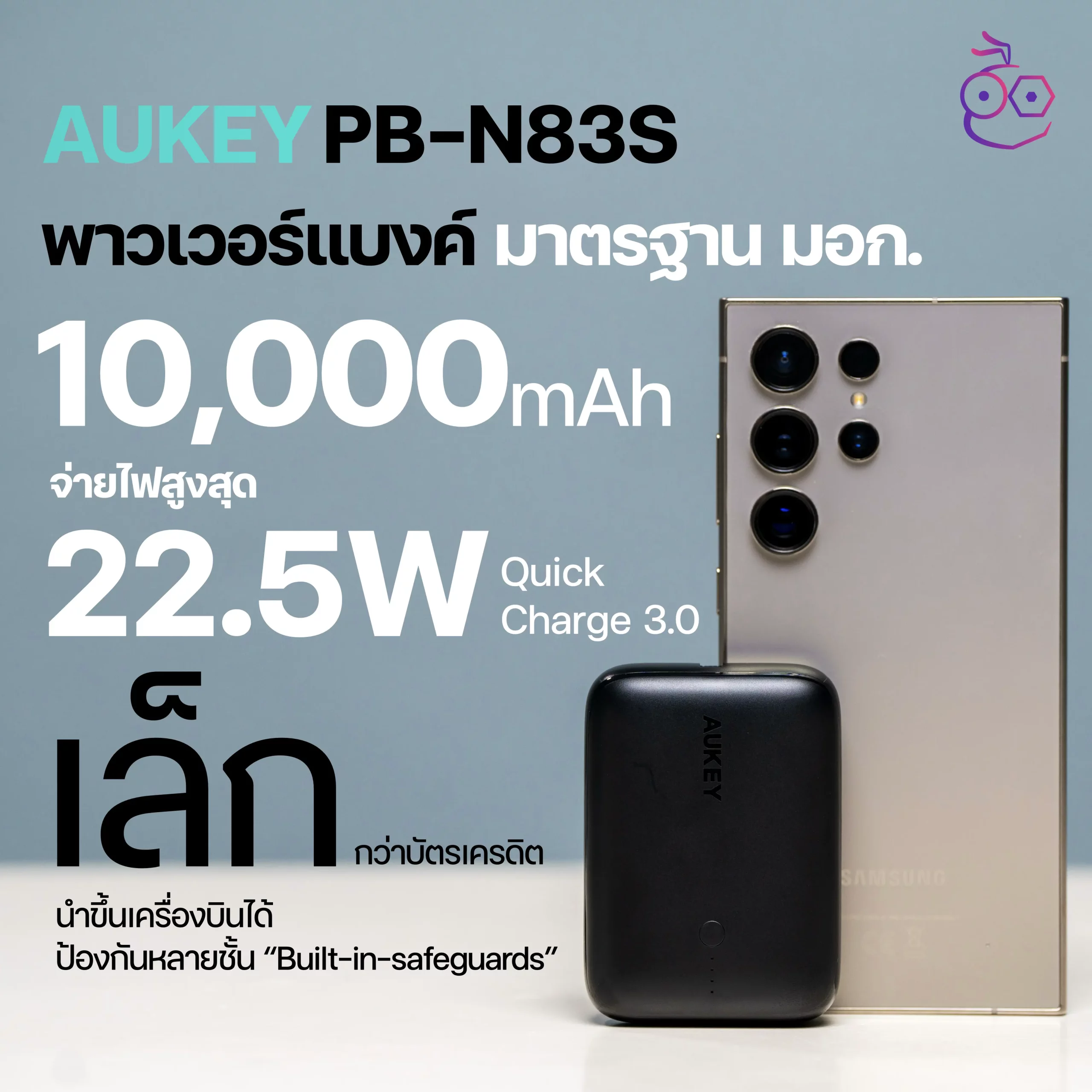 AUKEY PB-N83S: พาวเวอร์แบงค์มาตรฐาน มอก. 10,000mAh จ่ายไฟสูงสุด 22.5W, เล็กกว่าบัตรเครดิต