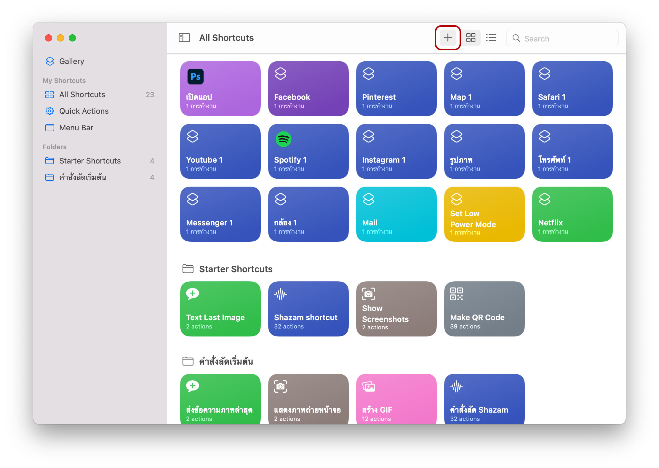 2. จากนั้นเลือกเครื่องหมาย + เพื่อเพิ่ม Shortcutsใหม่