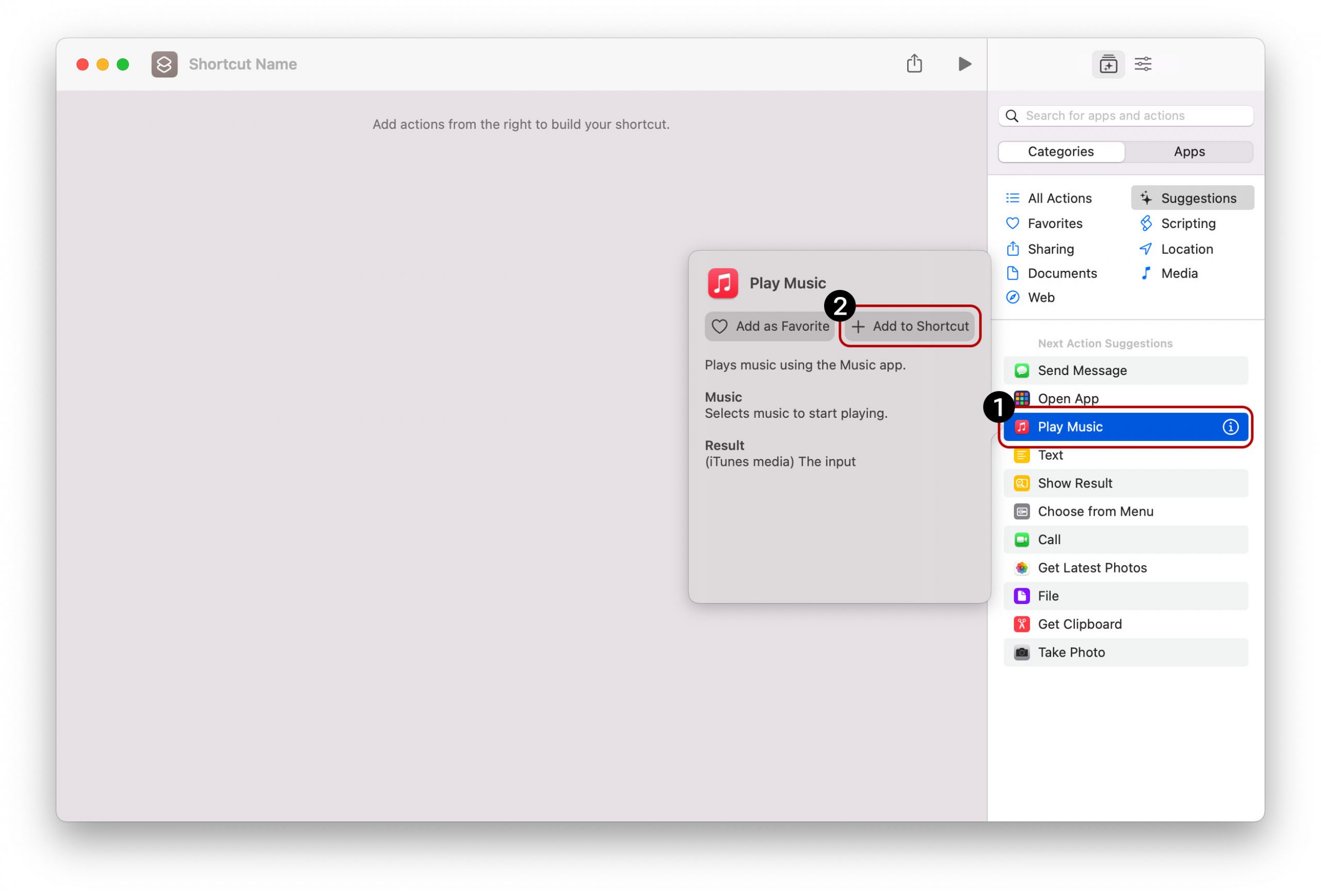 3. เลือก Play Music > + Add to Shortcut