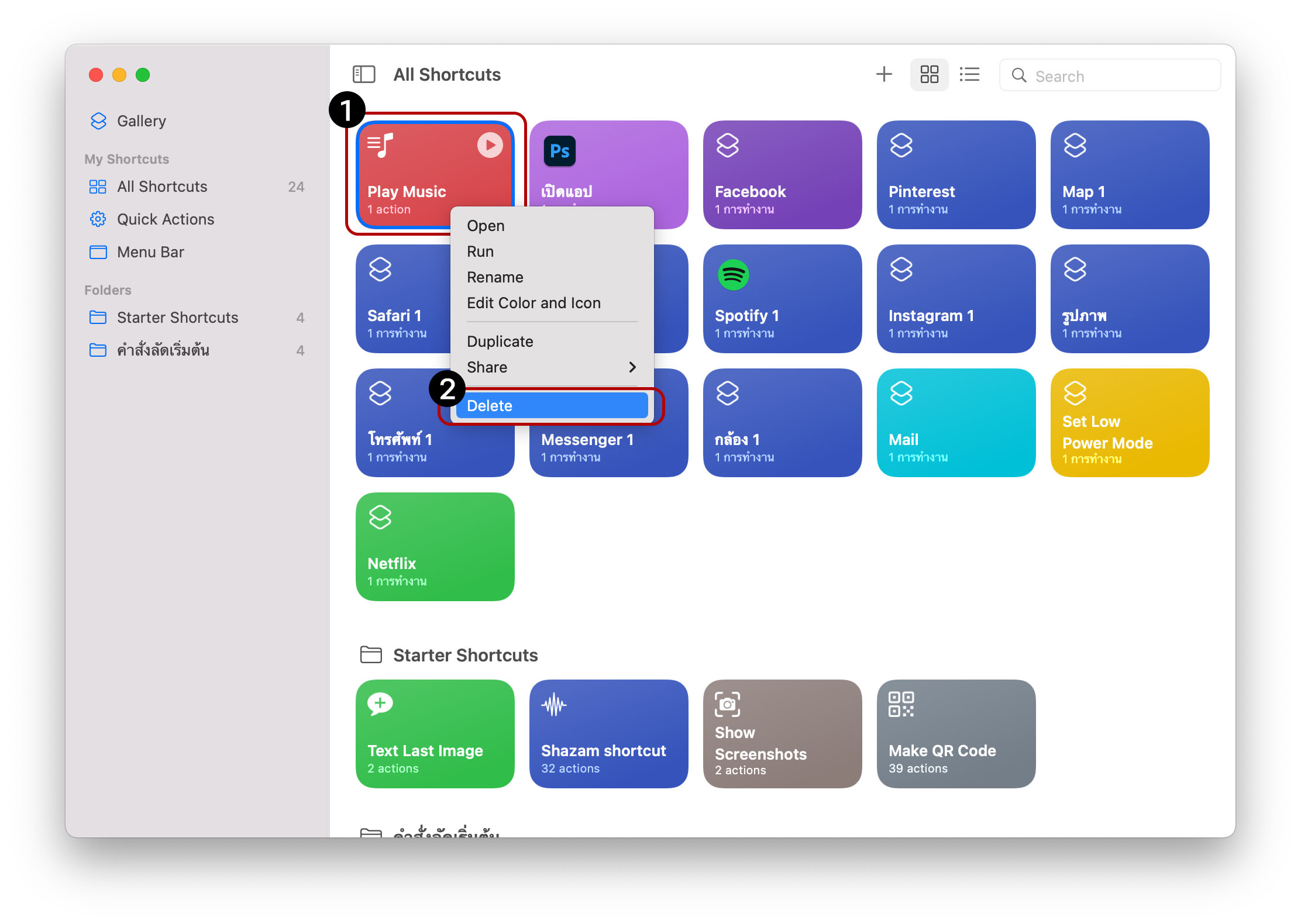 - เข้าไปที่แอป Shortcuts (macOS Monterey)