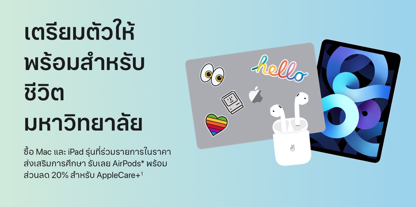 สำหรับในไทยนั้นเมื่อปีที่แล้ว Apple เริ่มจัดแคมเปญ Back to School ในไทยตั้งแต่ วันที่ 16 ก.ค. – 27 ก.ย. 2021 แถม AirPods และมอบส่วนลด AppleCare+ เช่นกัน นั่นหมายความว่า Back to School ในไทยอาจเริ่มแคมเปญช่วงกลางหรือปลายเดือน ก.ค. นี้ก็ได้ (ตามหลังสหรัฐราว ๆ 1 เดือน)