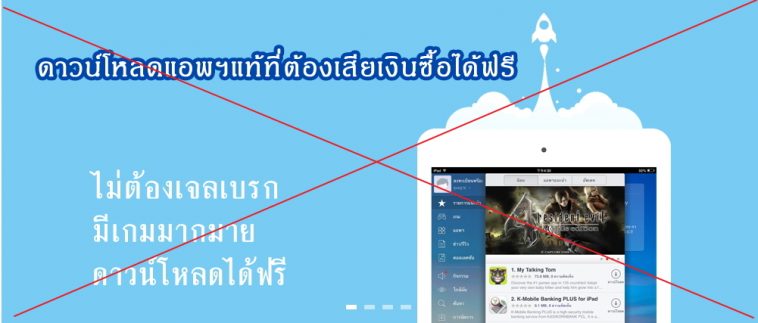 ผู้ช่วย AA และตลาดแอพ เป็นเครื่องมือที่ทำให้เครื่อง iPhone, iPad ติดตั้งแอปพลิเคชันที่ต้องซื้อจาก App Store ลงได้แบบไม่ต้องเสียเงิน “ถือว่าเป็นการละเมิดลิขสิทธิ์อย่างเต็มๆ”