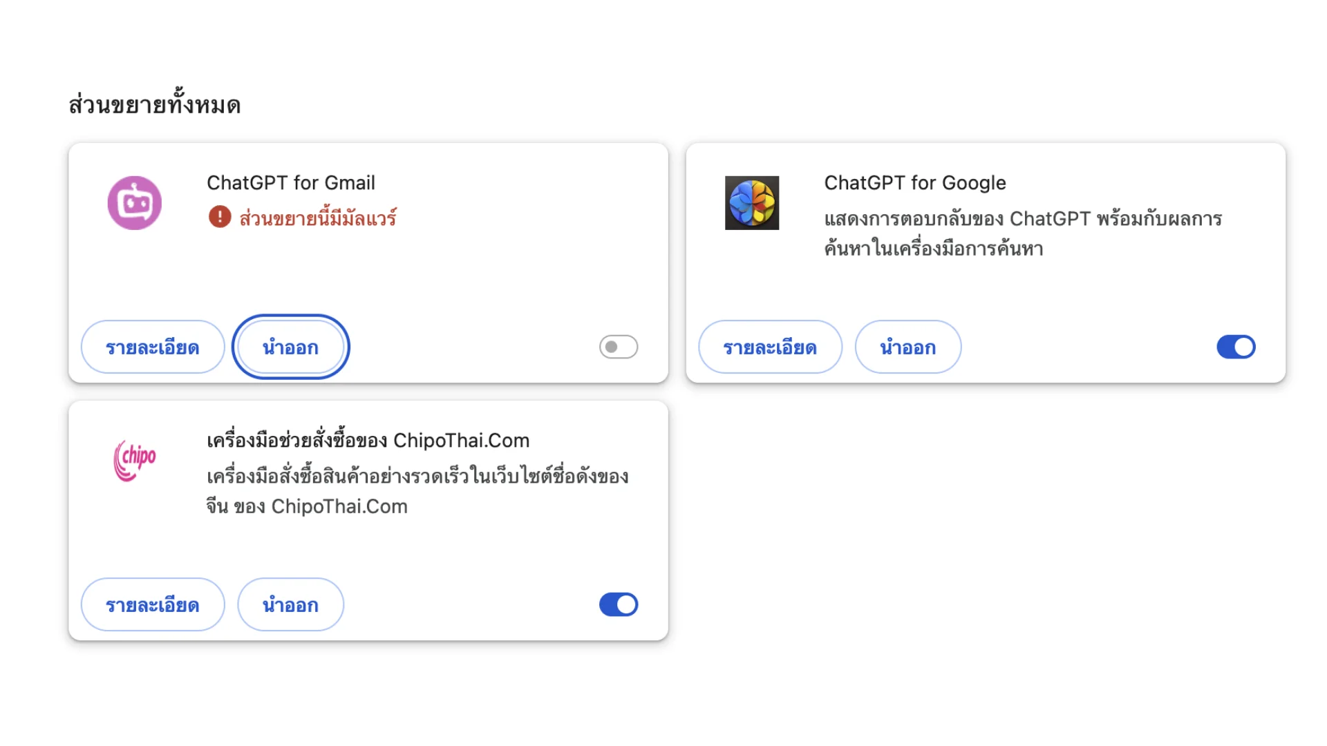 1. ตรวจสอบและลบส่วนขยายที่ไม่จำเป็นหรือไม่น่าเชื่อถือ