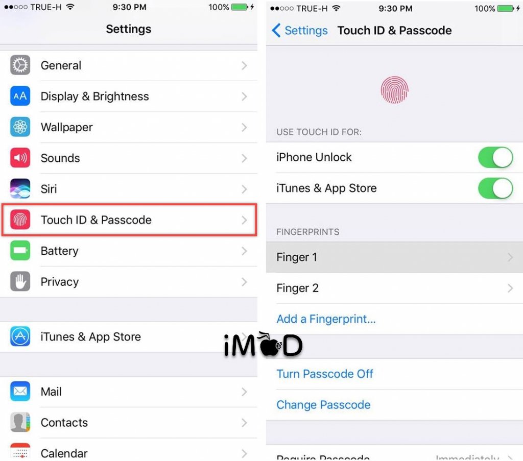 ผู้ใช้ควรตั้งค่าในส่วนนี้เพื่อความปลอดภัย สามารถตั้งรหัสเข้าเครื่องได้หลายรูปแบบไม่ว่าจะเป็น แบบ Simple (ตัวเลข 4 ตัว) หรือแบบ Complex (ที่มีตัวอักษร) สำหรับอุปกรณ์อย่าง iPhone 5s, 6, 6 Plus, 6s, 6s Plus, SE, 7 และ 7 Plus แนะนำให้ทำการสแกนนิ้วไว้ด้วยเลย