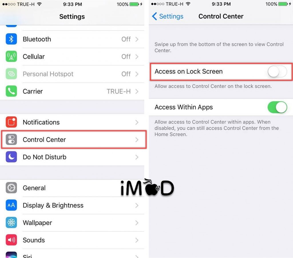 ปิดดารใช้งานในส่วนนี้เพื่อป้องกันคนมือซนมาปรับเมนูต่างๆ ใน Control Center เล่นขณะที่เราล็อคหน้าจอเอาไว้ เช่น อาจจะเปิดโหมดเครื่องบิน, WiFi & Bluetooth ทิ้งไว้ให้เปลืองโดยไม่ได้ใช้งาน เป็นต้น