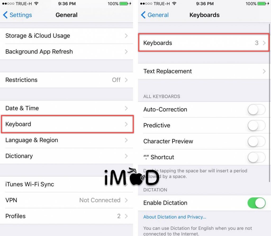 • ปิด Predictive (การคาดเดา) : ข้อดีของการเปิดตัวนี้คือ ระบบ iOS จะเดาคำที่เรากำลังจะพิมพ์ จากนั้นเราสามารถแตะได้เลย แต่หากใครพิมพ์เร็วๆ และไม่ค่อยผิดก็สามารถปิดฟังก์ชันนี้ได้