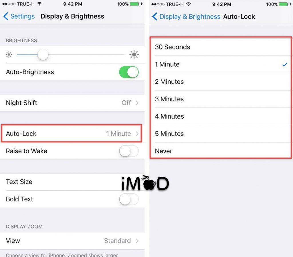 ไปที่ Settings  > Display & Brightness > Auto-Lock