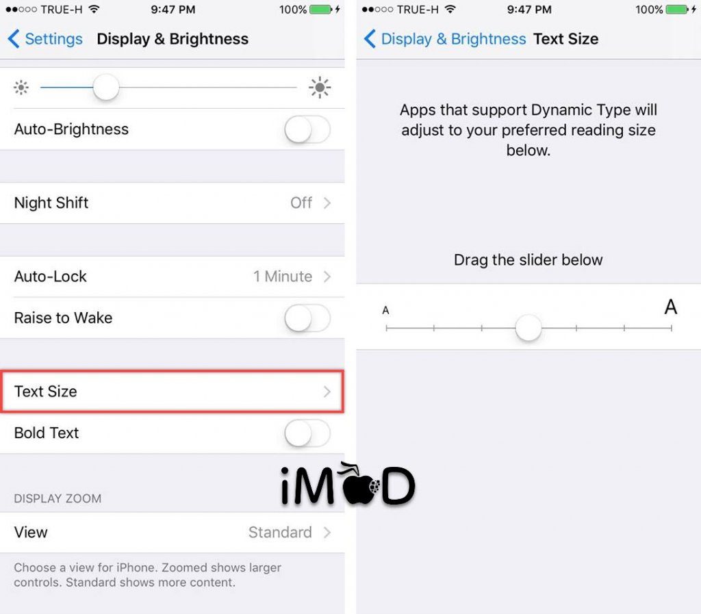 ปรับ Text Size (ขนาดตัวอักษร) เลือกปรับเล็กใหญ่ได้ตามความต้องการ
