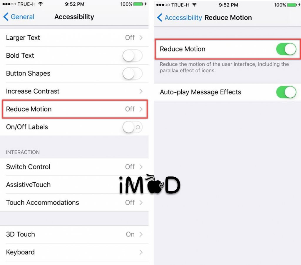 Reduce Motion จะช่วยลดเอฟเฟกซ์ต่างๆ ของอุปกรณ์ทำให้เครื่องเปิดปิดแอปต่างๆได้เร็วและลื่นไหลมากขึ้น