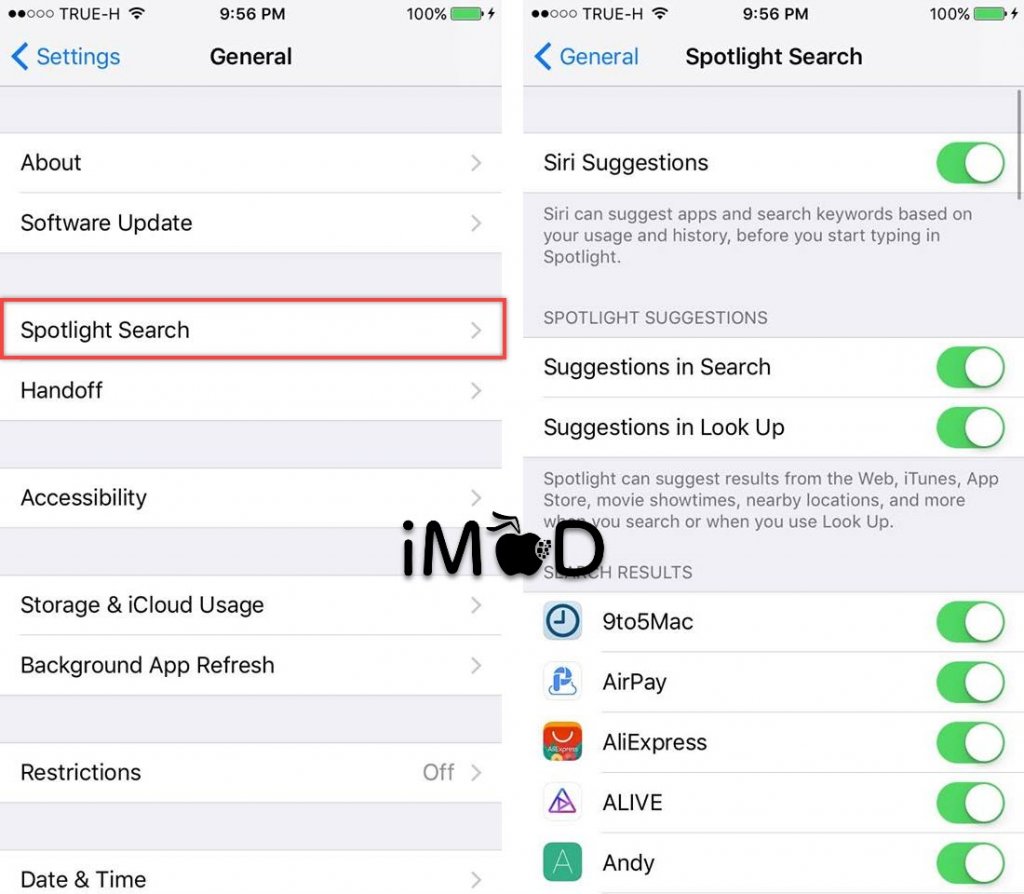 เดิมที iOS เปิดให้ Spotlight ค้นหาจากทั้งหมดทุกแอปที่มีในเครื่องซึ่งทำให้เกินความจำเป็น โดยปกติแล้วเราจะใช้ Spotlight ค้นหา เพลง รายชื่อผู้ติดต่อ, ข้อความในโน้ตหรือแอปจาก App Store เราก็เลือกเปิดเท่าที่เราต้องการจะค้นหา