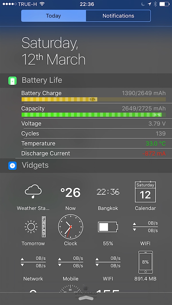 - มี widget แสดงที่หน้า Notification Center ได้ด้วย (ต้องซื้อเพิ่ม $0.99)