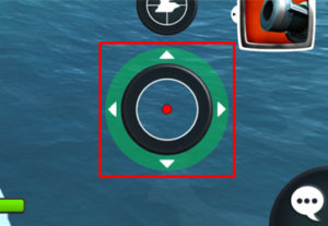 มือขวา: ควบคุมศูนย์เล็งของอาวุธ เช่น ปืน โดยการแตะที่หน้าจอฝั่งขวา เลื่อนไปยังบริเวณเรือศัตรูหรือเป้าหมายที่ต้องการ แล้วปล่อยระบบจะยิงอัตโนมัติ (ศูนย์เล็งจะทำการล็อคเป้าอัตโนมัติเมื่อมีศัตรูหรือเป้าหมายอยู่ใกล้)